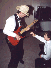 while MC Squared plays some good 'ol foot-stompin' music. He'll even do some pickin' 'n' grinnin' with his git-tar! ![]() DJ, can I pleeeez play your Guitar? |