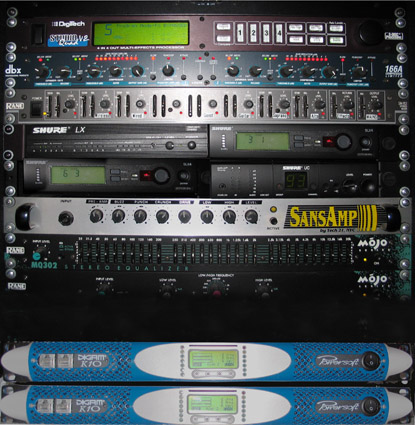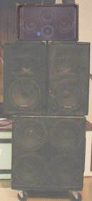 ![]() My system is rated at 2,400 VA (4,000 watts), but I never run it over 70%. Most situations call for 10% or less. VERY clean sound! My guitar sounds like a Marshall® Stack through this system - it's that good! Featuring Powersoft K-10 power amplifiers!! |